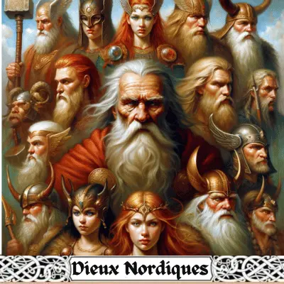 Les Vanes, dieux de la richesse — Les Ases, dieux de la force et du savoir — Gullveig, la sorcière corruptrice — Guerre et réconciliation — Odin, l’esprit partout présent dans le monde — Le Grand Voyageur escorté de ses corbeaux et de ses loups — Un haut-siège d’où l’on voit tout l’univers — Jord, Frigg et Rind, les trois visages de la Terre-Mère — Les servantes de la joie de vivre — Thor, dieu de la force à la barbe rouge — Balder le Bon, dieu de lumière — Tyr le courageux, Hermod le messager et Bragi le poète — Vidar et le silence de la forêt — Heimdal, le fidèle gardien du pont Bifrost — Njord, dieu vane du rivage — Ses deux enfants, Frey et sa sœur Freya — Aegir, le géant de la haute mer et Ran la mère des vagues — Loki, le dieu malfaisant et sarcastique.