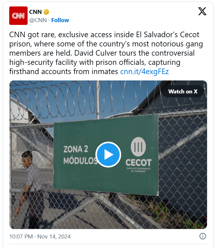Il est rare que nous ayons droit à un reportage direct de la part de CNN, mais cet aperçu de l’une des prisons de Bukele au Salvador est pour le moins révélateur.