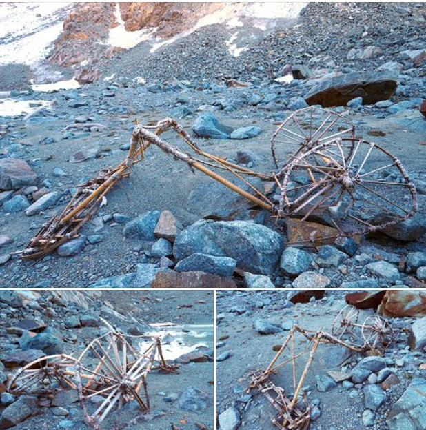 En marchant le long du col du Splügen, près du canton des Grisons, Veri est tombé sur un engin apparemment à deux roues.