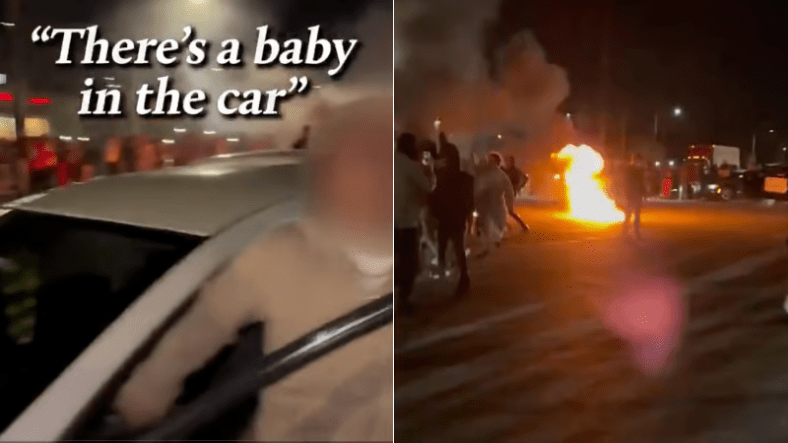 Des suspects détruisent des véhicules et envahissent une voiture avec un bébé à l’intérieur