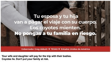 Votre femme et votre fille paieront le voyage de leur corps. Les coyotes mentent. Ne mettez pas votre famille en danger.