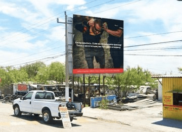 « Ces panneaux d’affichage racontent les histoires horribles du trafic d’êtres humains. Ils exhortent les habitants d’Amérique centrale à réfléchir à la réalité violente et horrible de ce qui arrivera aux femmes et aux enfants qu’ils emmènent avec eux. »