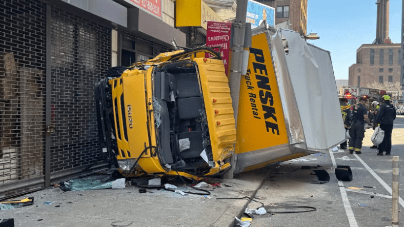 Selon certaines informations, un camion de fret Penske aurait sauté sur un trottoir, s’est renversé et s’est écrasé contre des devantures de magasins à l’intersection très fréquentée de Kneeland Street et Harrison Avenue.