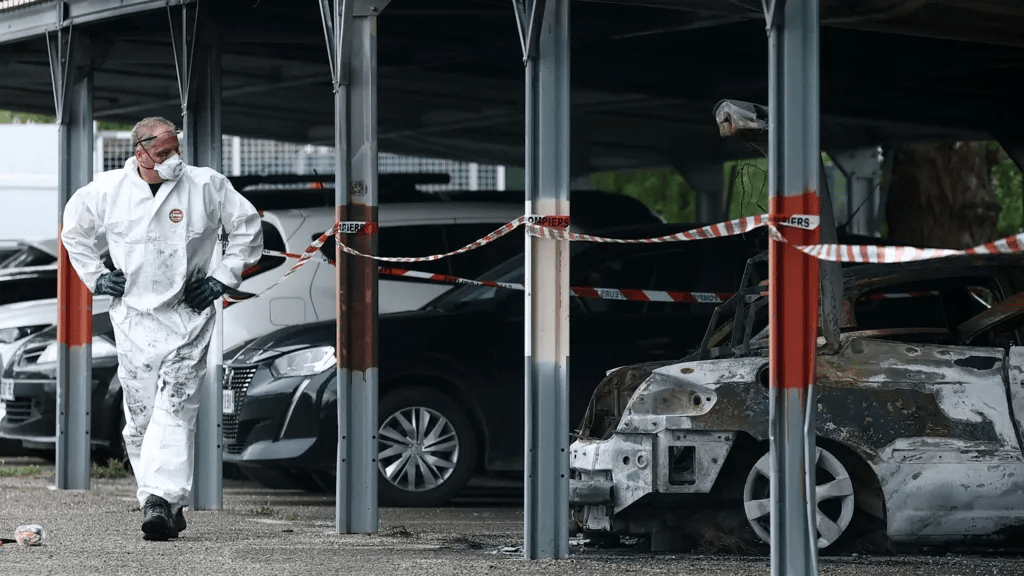Des voitures ont été incendiées lors d’une série d’attaques contre des prisons françaises depuis dimanche soir.