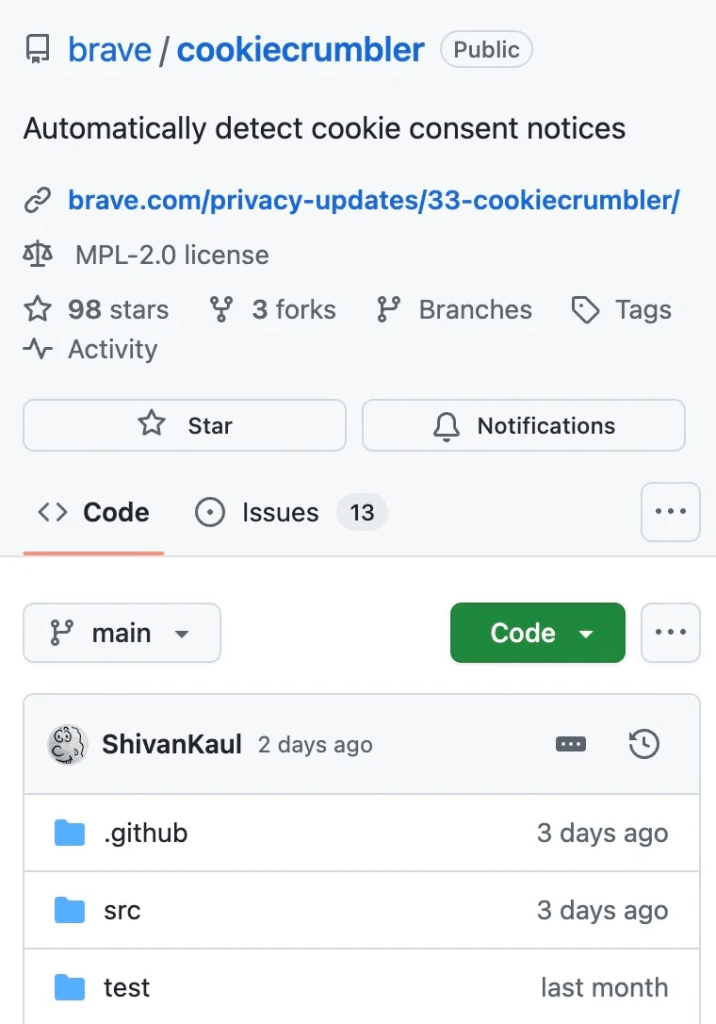 Outre la détection de ces notifications, Cookiecrumbler propose également des correctifs. Les développeurs de l’outil indiquent qu’ils étudient actuellement les moyens d’intégrer Cookiecrumbler au navigateur Brave, mais que cela sera possible après une analyse complète de la confidentialité.