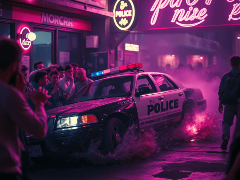 Un élève policier fonce délibérément sur la foule devant un bar