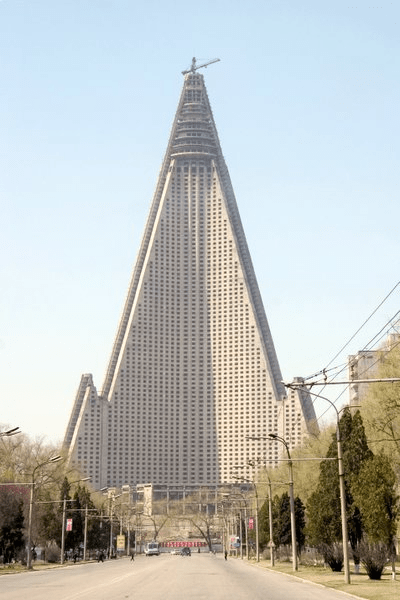 #10 En 1987, la Corée du Nord a commencé la construction de l’hôtel Ryugyong, qui aurait été l’hôtel le plus haut du monde à l’époque s’il avait été terminé à temps en 1989. Au lieu de cela, la construction de cet étrange gratte-ciel de 105 étages qui ressemble un peu à une pyramide a été suspendue en 1992, et la structure inachevée n’était plus qu’une énorme coquille de béton dominant Pyongyang, complètement vide pendant les 16 années suivantes. Les travaux ont repris en 2008, mais le projet n’est toujours pas terminé à ce jour…