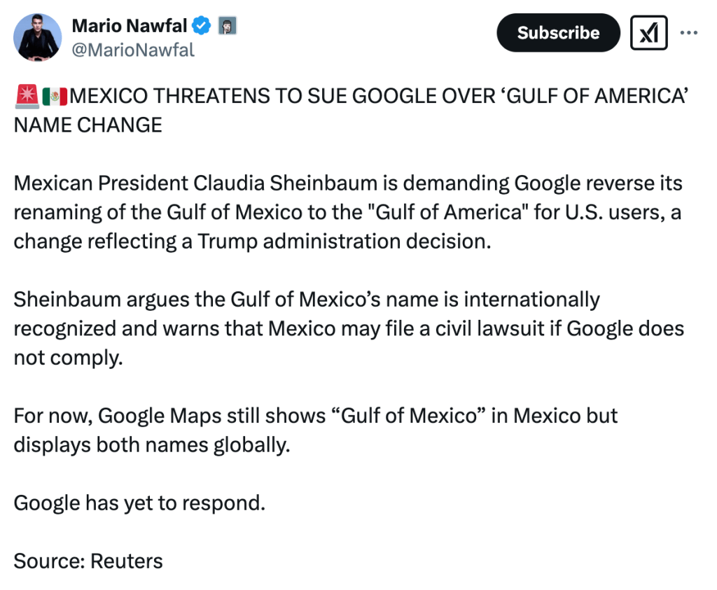 Google Maps s’est retrouvé au centre d’un incident international pas si majeur après que la présidente mexicaine Claudia Sheinbaum a menacé l’entreprise de modifier le Golfe du Mexique pour les utilisateurs américains.