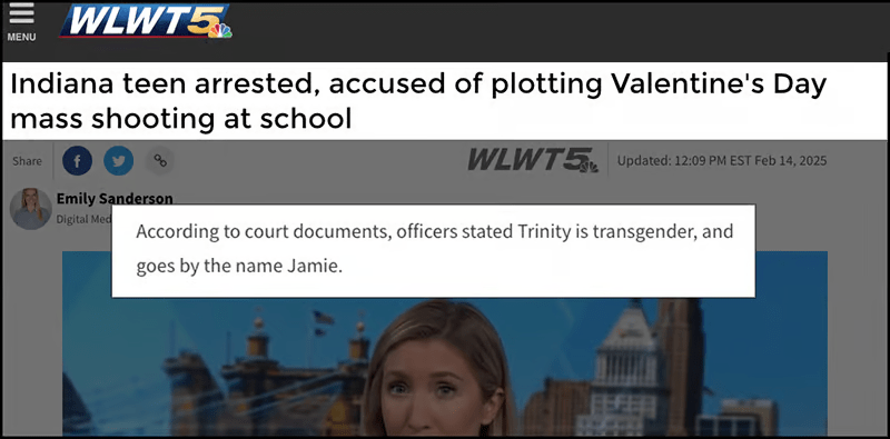 Le rapport ajoute : « Selon les documents judiciaires, les agents ont déclaré que Trinity était transgenre et qu’elle s’appelait Jamie. »