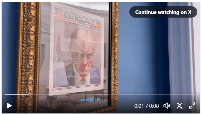 L’image est apparue sur la couverture du New York Post, que le président a sauvegardée et affichée devant son bureau cette semaine.