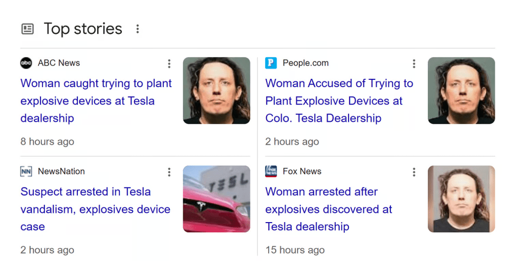 Les médias grand public affirment qu’une « femme » a été arrêtée pour avoir apporté des explosifs chez un concessionnaire Tesla du Colorado, alors qu’il s’agissait en fait d’un homme biologique qui s’identifie comme transgenre.