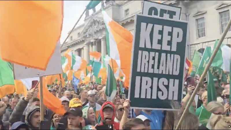 Une vidéo publiée sur la chaîne Telegram du groupe montre le leader Jack Eltis prononçant un discours via un mégaphone et appelant à la fermeture des frontières du pays.