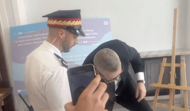 Le rassemblement a ensuite été brièvement interrompu par un agitateur agressif de gauche qui a crié des insultes avant d’être déplacé par la police.