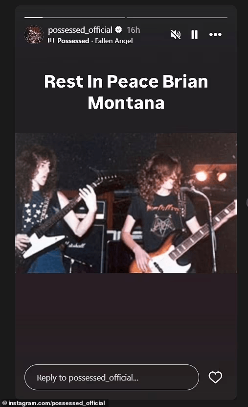 Sur ses stories Instagram mercredi , le groupe Possessed a partagé une image du défunt musicien avec la légende : « Repose en paix Brian Montana. » (Le média Consequence a identifié le musicien comme étant l’homme à gauche sur la photo que le groupe a publiée en hommage.)