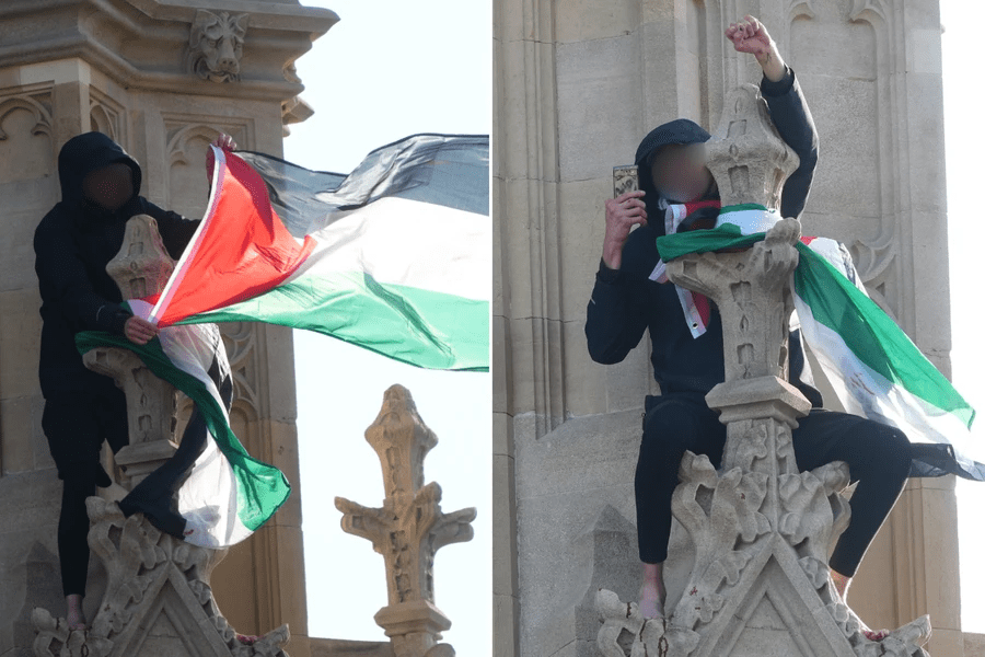 Un manifestant pro-palestinien qui avait escaladé Big Ben en agitant un drapeau a finalement été récupéré, mettant fin à une confrontation de 16 heures.