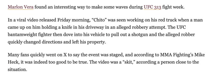 Mike Heck, un journaliste de MMAFighting.com , a déclaré qu’une source avait confirmé que la vidéo n’était qu’un « sketch », a rapporté Sports Illustrated .