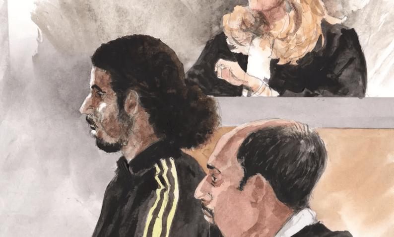 Oussama Chledi lors de son procès au tribunal correctionnel du Var, croqué par Rémi Kerfridin.