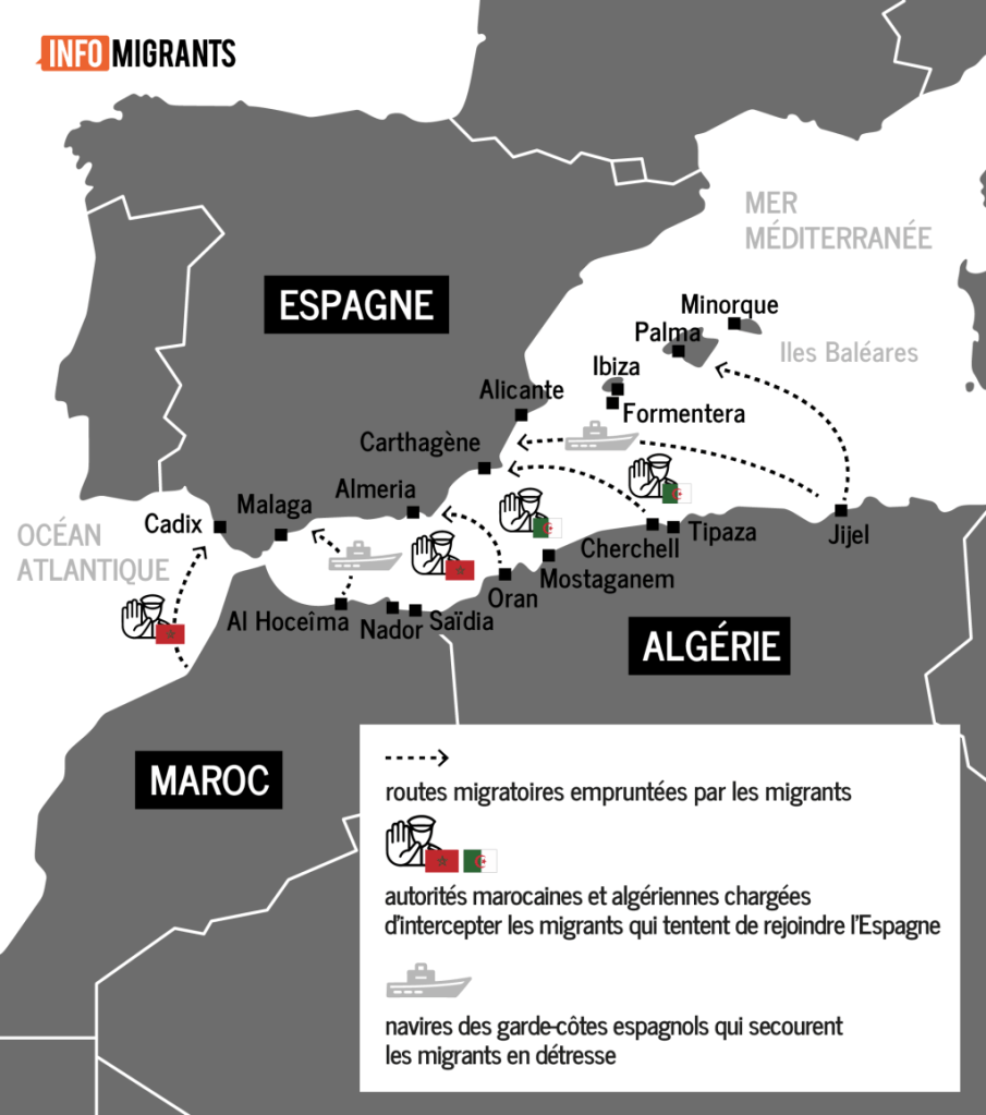 Ces exilés sont appelés « harragas » (« brûleurs de frontières » en français ), ils embarquent dans de petits bateaux en fibre de verre depuis Alger, Oran, Mostaganem ou Tipaza. La grande majorité de ces candidats à l’exil fuit le manque d’opportunités professionnelles. Selon l’ONG espagnole Caminando Fronteras, les passagers déboursent généralement entre 2 000 et 4 000 euros, parfois plus, pour effectuer ce trajet à bord de petits bateaux à moteurs de 60 à 140 chevaux, totalement inadaptés à ce type de traversées en pleine mer.