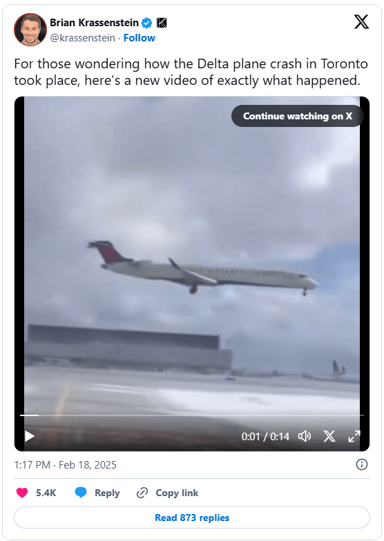L’avion de Delta Air Lines qui a eu un accident à l’atterrissage à Toronto a heurté le tarmac de plein fouet avant de s’enflammer et de se retourner, montre une nouvelle vidéo publiée mardi sur les réseaux sociaux.